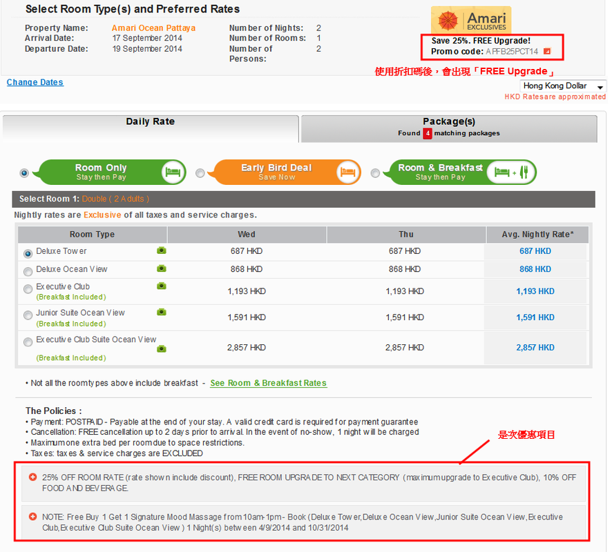 呢個優惠碼除左Amari Ocean Pattaya可以用之外,另一間係附近既Amari Garden Pattaya都可以用到優惠,但已測試呢兩間以外既Amari酒店用唔到此優惠碼,如想搵其他Amari優惠可按此,睇其他Amari優惠介紹。