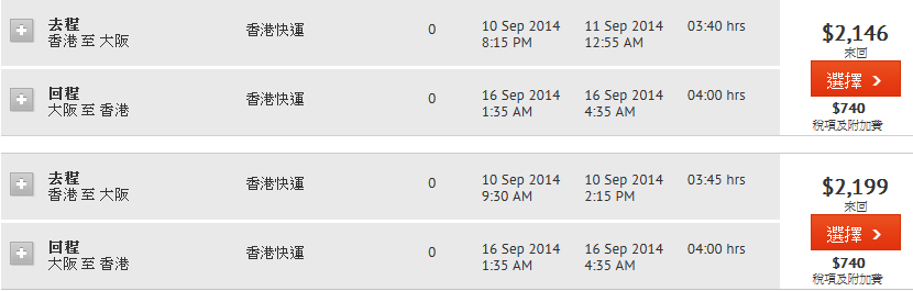 HK Express-大阪 $2,146起 + $740 (稅項) = $2,886 (直航)