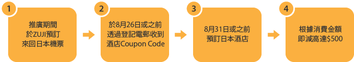 Zuji出左日本新優惠,由8月18至22日於ZUJI預訂往日本之來回機票,即可獲得$500酒店Coupon Code!