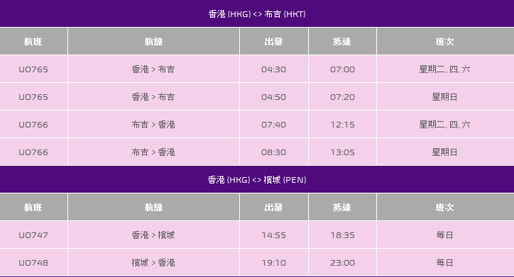 留意10月26日之後布吉同檳城航班時間有所調動,訂飛前睇清楚!