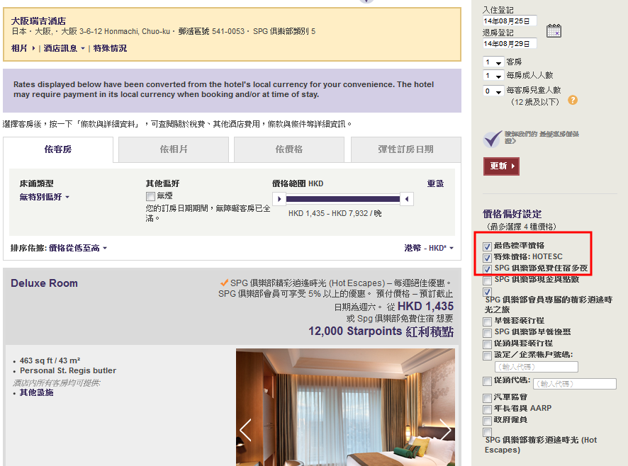 Starwood會員可再享95折,如未成為會員,可免費登記;