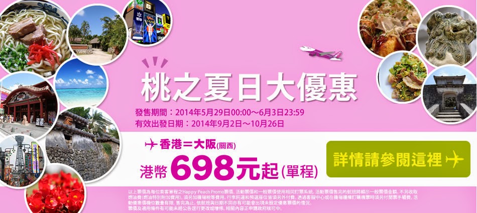 5日期間限定的「桃之夏日大優惠」單程只由港幣 698元起!9月出發