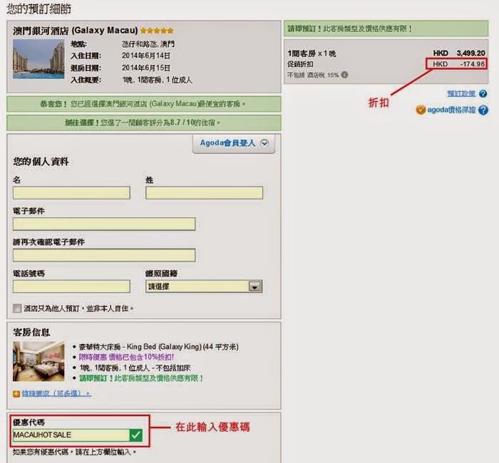 預訂時輸入優惠代碼MACAUHOTSALE】